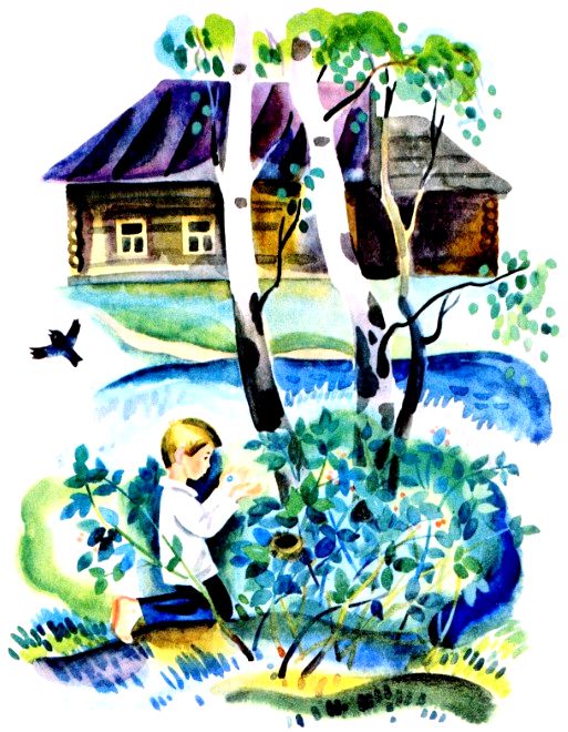 – А вот, послушай-ка. Вырос в саду, говорят, куст малины. Пушистый, развесистый. Смотрели все на него и радовались – уж больно хорош. Весной он одевался в белую рубашку, вот как ты в праздники, а летом угощал всех сладкими ягодами. Вот как! И полюбился малиновый куст птице одной. Свила она там гнездо – мягкое, удобное, со всех сторон ветками укрытое. Положила туда яички и приготовилась высиживать птенцов.