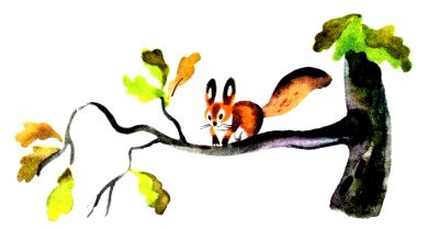 Не успел я у деда спросить, а белка из дупла выглядывает, и мордочка у неё уже не кошачья, а остренькая, беличья. Тут уж я не выдержал, рассмеялся – догадался почему так. Ведь это она в свою кладовую орехи да жёлуди за щеками таскает.