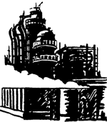 Теперь рядом с воротами расположены магазины для владельцев автомобилей. Здесь продают бензин. Флаги развеваются возле колонок. Уже не сборщик пошлин с кожаным кошелем, а человек в синем комбинезоне взимает мзду с каждого автомобилиста, продавая ему дорогое горючее. Доход получает при этом не город, а «Шелл» или «Эссо».