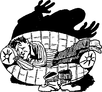 Сыщик стал думать, как ему справиться со зловещим людоедом. И придумал. В лесу он наловил дятлов. Посадил их в клетку. И пошел к подвалу. Наступила ночь. Сыщик привязал себя ремнем к фонарному столбу и стал ждать. Ровно в полночь из глубокого подвала выбрался людоед-пылесос. Он увидел человека. Раскрыл свою огромную пасть. И стал всасывать воздух. Поднялся страшный вихрь. Он втягивал все в пасть жуткого злодея. У сыщика с головы улетела шляпа, с ног соскочили башмаки, на плечах разорвался плащ. Ремень трещал, но крепко держал. Сыщик открыл клетку. И дятлы полетели в пасть к людоеду-пылесосу. Он их проглотил.