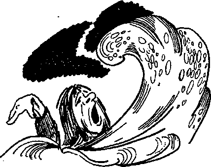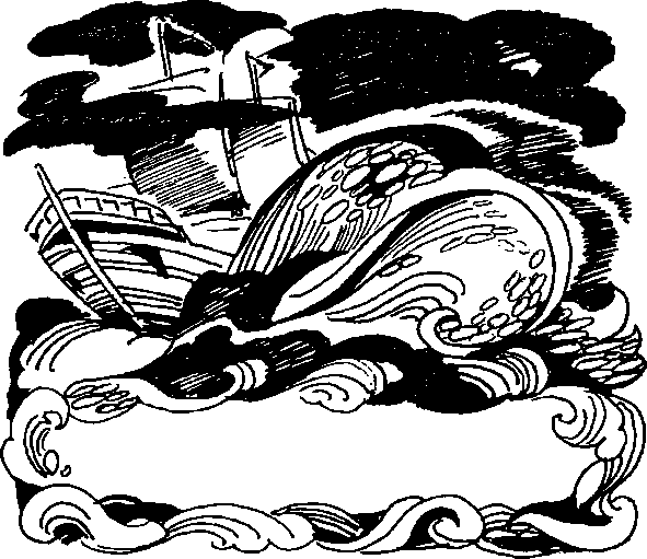 Капитан и матросы стояли внутри огромного черепа великана. Вдруг челюсти черепа сомкнулись. Выход был закрыт. Один матрос закричал: