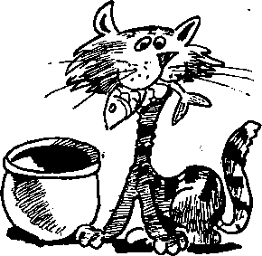 А в комнате был кот Васька. Увидал рыбку. Прыгнул на окно, просунул морду в горшок и проглотил красивую рыбку.