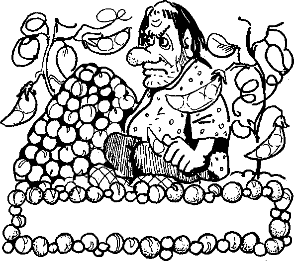 Сидит Бука на пеньке в сером сюртуке. Баба с коромыслом идет. Бука грозно поглядел, закряхтел, толстыми губами зашлепал, злыми глазами захлопал. Баба говорит: