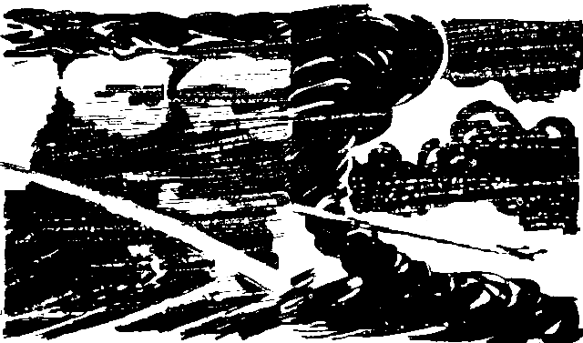 «Уран» мчался над облаками. По небосводу медленно проплывали звёзды. Радар доносил, что внизу по-прежнему расстилается ровная поверхность Но была ли она морем или сушей, установить не удалось.