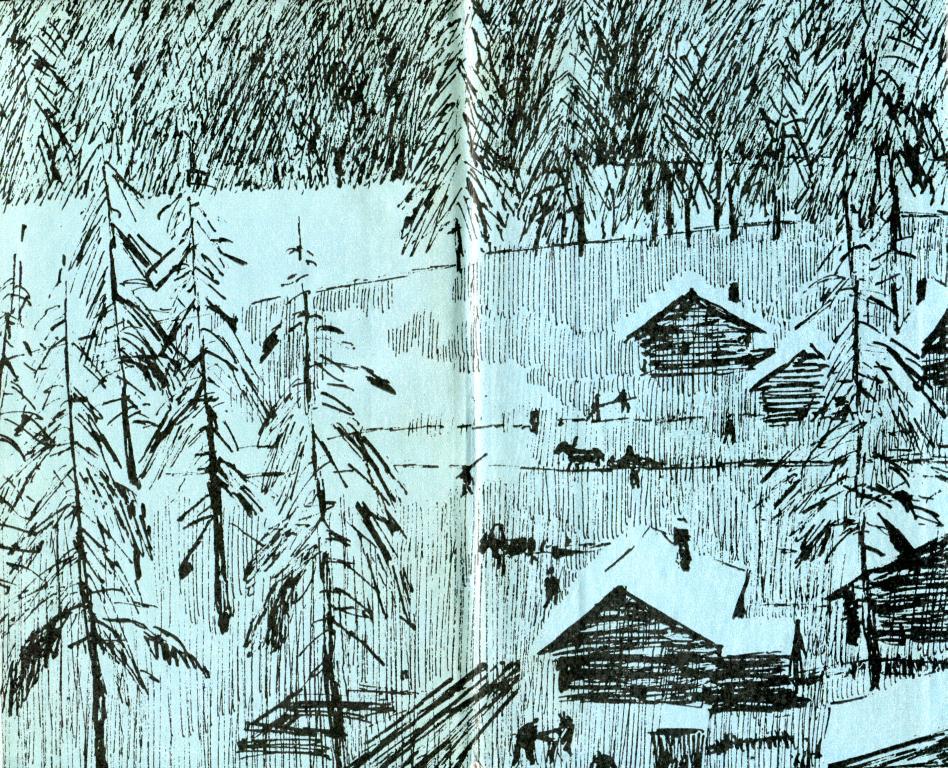– Приехал инженер. Пожил у нас месяц, составил проект гидравлики, научил разбирать чертежи. Словом, сделал что мог и уехал – тогда инженеры в тайге не шибко водились…