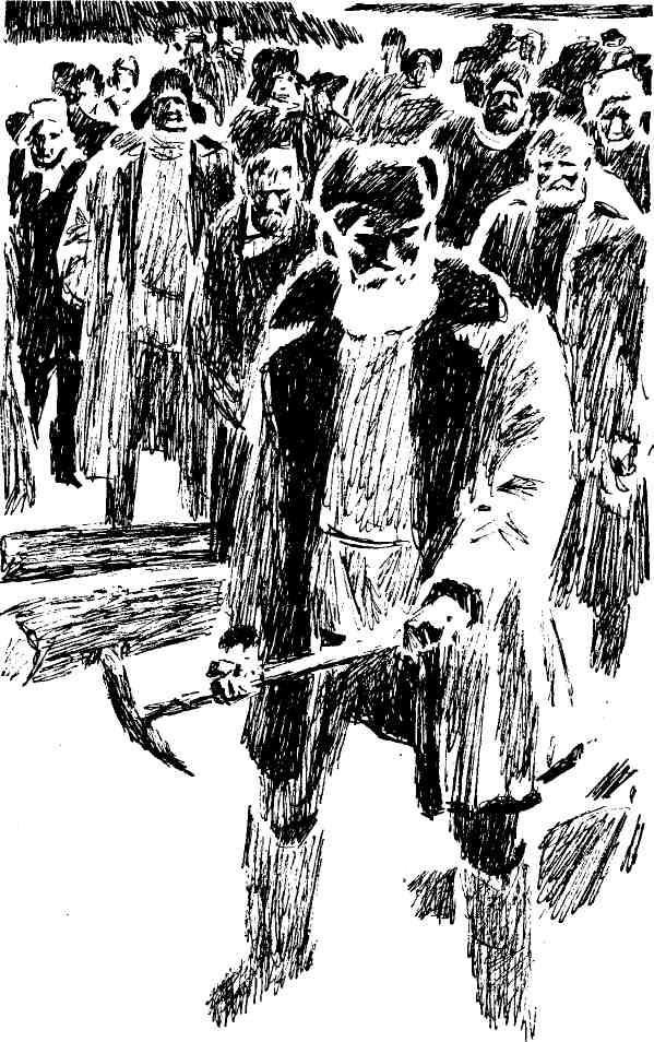 Бушуев подошел к месту будущей штольни в момент, когда Степанов, стоя на толстом пне, обратился к смущенному Турбину: