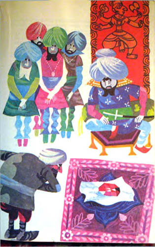 При этих словах купец вскочил из-за стола и со всех ног кинулся во дворец магараджи. Придворные, узнав, по какому делу он пришел, отвели его к своему государю.
