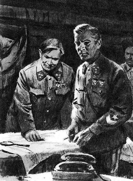 – Прошу садиться! – предложил он и длинным пальцем указал на стул. – Вы недавно из дивизии? Как у вас обстановка? Противник проявляет активность?.. Прошу – в общих чертах.