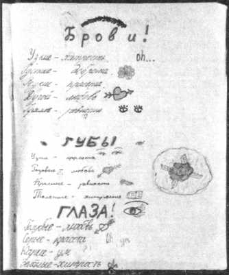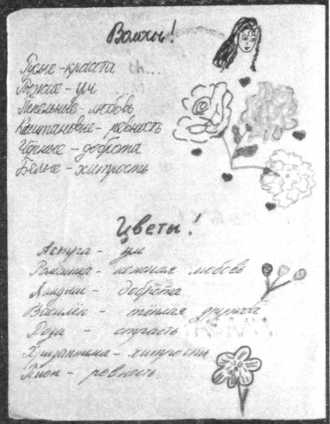 Альбом К. Головиной, 11 лет. СПб, Василеостровская гуманитарная гимназия. Альбом 1994 г. Альбом практически полностью состоит из толкований цветов, чисел, черт лица, поцелуев, знаков Зодиака и проч.