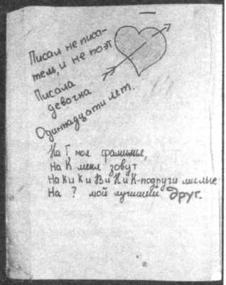 Поиск ответов на многочисленные вопросы заставляет девушек обращаться к гаданиям – как же еще им узнать ответ на классический вопрос «любит или не любит?», если сама любовь для них только открывается? «Гадалки» потому так широко распространены и популярны, что дают на типичные вопросы ответы, которые заключают в себе все реальные, типичные ситуации – часто складывающиеся и вероятные в данном случае. Некоторые «гадалки» школьницы составляют сами. Естественно, они пишут интересующие их вопросы и возможные (чаще всего – желаемые) ответы.