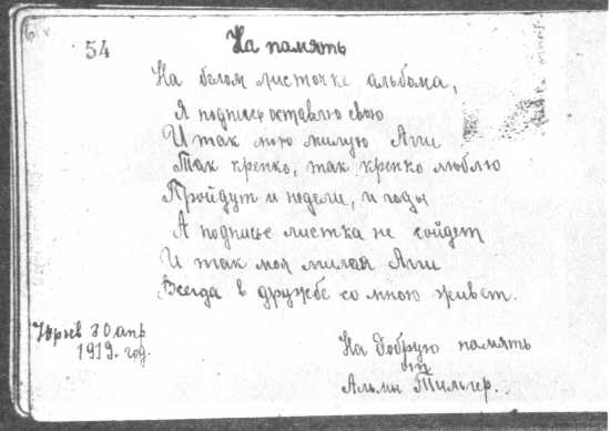 Из альбома ученицы Юрьевской гимназии. 1919 г. Альбом хранится в Эстонском литературном музее