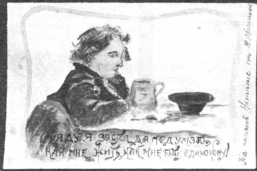 Альбом Наташи (см. № 2). Копия открытки с рисунком Е. Бем «Крестьянский мальчик за столом»