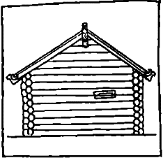 На фасадной стороне дома прорубали одно или два окна, причем в некоторых (более южных) уездах дома снаружи обмазывали глиной и белили. Необходимость закрыть щели между бревенчатой стеной и рамой вызвала появление наличников. Чтобы защитить торцы слег крыши от дождя, в конструкцию кровли была введена причелина[82]82