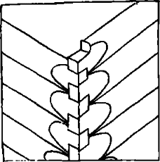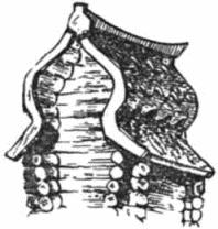 Живописны двускатные крыши. Крепление досок крыши по древней традиции производилось без гвоздей. По слегам крыши укладывались курицы – еловые лесины вместе с куском корневища, загнутым наподобие естественного крюка. На эти крюки клались деревянные желоба с двух сторон крыши (водотоки, потоки и т. п.), в них вправлялись концами доски кровли. Верхний конец досок кровли зажимался по гребню крыши охлупнем – длинным бревном с треугольной выемкой. Стоит выбить два деревянных шипа, закрепляющих охлупень, и можно без труда сменить любую доску. Конец охлупня обычно представлял собой естественное корневище дерева, которому придавали разнообразные фигурные очертания. Иногда тесовые скаты прижимались гнетами, концы которых со стороны фронтона скреплялись небольшой, обычно резной доской, называемой огнивом. В курной избе нередко устраивался дымник высоко над крышей, для выхода дыма с боков делали орнаментированную прорезь, а сверху его покрывали маленькой двускатной крышей также с резным охлупнем. Выступающие торцы слег кровли часто зашивали досками (причелины, покрылки, косицы). Перпендикулярно причелинам прикреплялись короткие доски, предохраняющие от сырости торцы верхних бревен сруба, – сережки, малые подкрылки и т. д.; стык причелин под коньком крыши прикрывала короткая доска, называемая ветреницей, а на севере – кистью или чуской. На линии потолка снаружи иногда помещали длинную доску – подзор – прототип позднейшего карниза. Металлические пилы известны с XII в., но пиленые доски использовались только для корабельного дела, а для домов их делали до XVIII в. путем раскалывания бревен с помощью клиньев. При этом получались довольно толстые (до 20 см) плахи, на которых топором, долотом, а с XVIII в. и пилой наносились различные узоры.