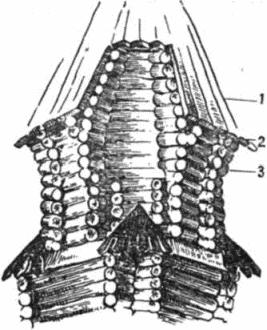 [Закрыть] образовывали соответствующий угол, необходимый для арки. Арка из бивней мамонта была надежной опорой для кровли и дверного устройства. Арочный каркас жилища, устроенный из костей мамонта, удерживал кровлю весом 2—3 т. Правда, в некоторых жилищах крыша опиралась еще и на дополнительные подпоры, но все же основную нагрузку несли арки.