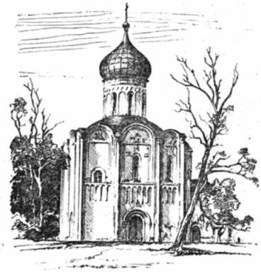 В XII в. утвердился тип крестово-купольного храма: шести-или четырехстолпный, одноглавый, с шлемовидной главой на высоком барабане и выступающими полуциндрическими абсидами (чаще всего тремя) с восточной стороны. Другие стены расчленены лопатками (пилястрами) на три части – соответственно разделению внутреннего пространства. Каждое деление стены завершается полукружиями коробового свода – закомарами. Закругленные абсиды, волнистая линия закомар, круглый барабан и мягко завершающий его купол исключают всякую угловатость: храм выглядит почти скульптурно. Чудесное произведение древнерусской архитектуры – церковь Покрова на Нерли – стоит одна в чистом поле, на берегу реки Нерли. Вокруг нее нет никаких строений, и ее белокаменный стан, как огромная статуя, виден издалека, даже с окраины города Владимира.
