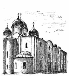 Большое каменное строительство началось на Руси, как и на большей части территории Европы, в X в. В архитектуре первых каменных храмов сказывалось влияние Византии, но с самого начала ярко проявились самобытные черты русского каменного зодчества. Так, в основе киевской Софии лежал византийский пятинефный принцип, но в то же время храм отличался своеобразием – имел тринадцать куполов над сводами, а не дошедшая до нас Десятинная церковь (первое каменное здание Киева) – даже 25 куполов. Эта многоглавость не встречается в византийских храмах, но зато очень типична для русского деревянного зодчества.