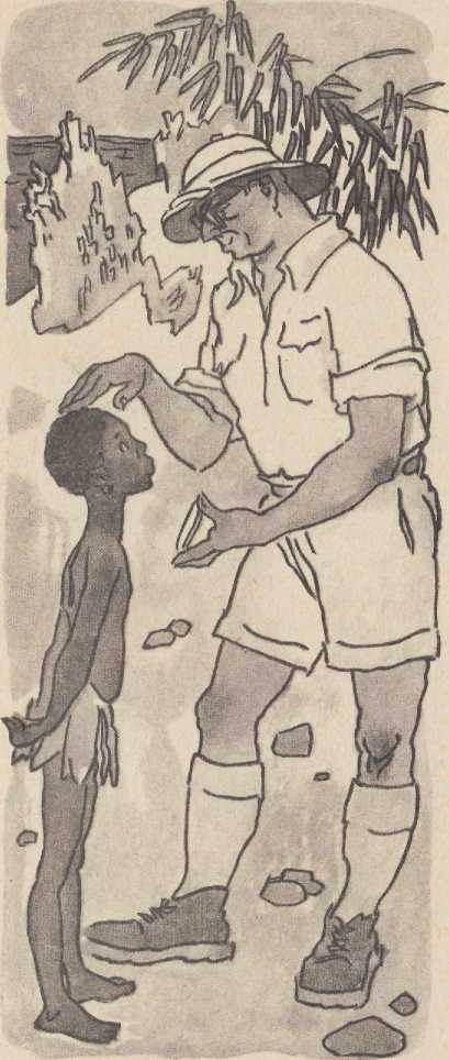 Жужжащий звук недолго буравил воздух. Белый нажал на кнопку. Всё. Достаточно. Снято именно столько кадров, сколько нужно. Надпись, сопровождающая их, будет такой: «Не пожелав отдать свою прилипалу за целую кучу добра (куча добра уже снята), упрямый туземец удаляется. Он проявил неуважение к белому, и белый его проучил».