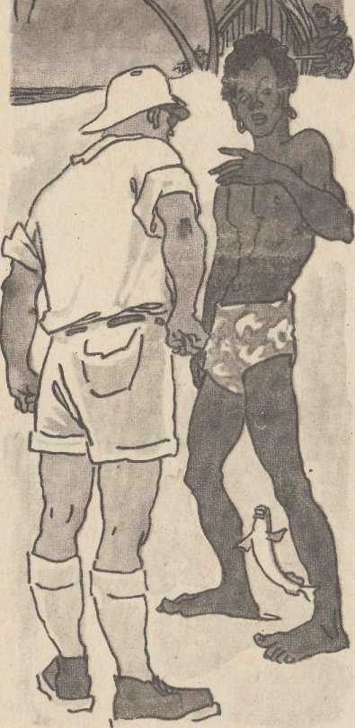 Американец стоял перед Нкуэнгом в угрожающей позе. В нескольких шагах от них съёмочная камера в руках минданайского торговца издавала жужжащие звуки. Господин Деньги имел все основания быть довольным. Съёмка шла отлично. А дальше пойдут кадры ещё более интересные. Он добьётся того, что снимет островитянина, рвущею волосы от горя, катающегося в отчаянии по земле. Цветные ведь очень здорово умеют выражать своё отчаяние.