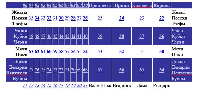 Исключение. Когда сумма Карты Личности – 22, Картой Личности является Дурак, а Карта Души – (IV) – 2 + 2 = 4. Б египетском Таро 22 = О.