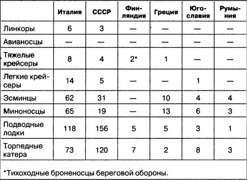 СРАВНИТЕЛЬНЫЕ ДАННЫЕ О ВОЕННО-МОРСКИХ СИЛАХ ВОЮЮЩИХ СТРАН (к моменту их вступления в войну)