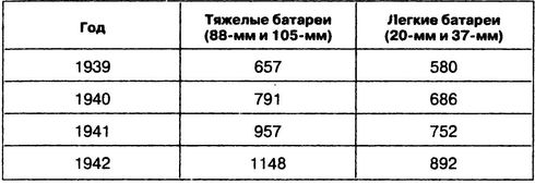 Беспрерывные дополнительные требования уже не покрывались новыми формированиями, хотя со времени начала войны численность зенитной артиллерии значительно увеличилась. Вот некоторые данные, иллюстрирующие рост зенитной артиллерии к 1942 году: