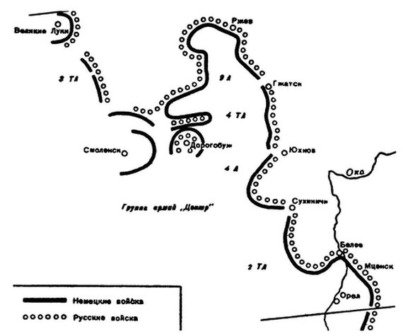 Главный удар русские наносили против войск центральной группировки войск, оказавшихся здесь почти в полном окружении, а также против единственной артерии, питавшей эти войска, – железнодорожной линии Смоленск – Вязьма. Наступление велось войсками Калининского фронта русских, командный пункт которого находился значительно западнее штабов немецких войск. Армии этого фронта, подгоняемые своим командованием, почти беспрерывно атаковали немецкие войска. Однако ценой нечеловеческих усилий все атаки противника были отбиты. Немцам удалось выстоять до тех пор, пока наступательные возможности русских окончательно не иссякли. При этом местами немцы сумели даже несколько улучшить свое положение.