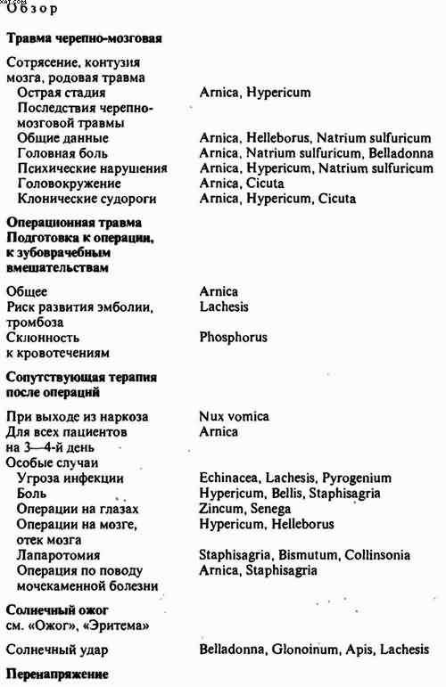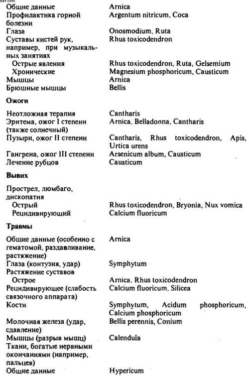 -При последствиях ранений и хирургических вмешательств гомеопатические лекарства могут оказать решающую помощь. Выбор лекарств ограничен в отдельных случаях немногочисленными препаратами, так как индивидуальные реакции зависят от характера травмы. Разумеется, нельзя забывать о необходимой специальной терапии.