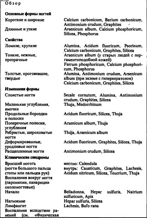 Деформированные, уродливые ногти указывают на уже известные нам лекарства, которые в терапии болезней ногтей имеют особое значение. В связи с этим коротко напомню локальную симптоматику этих лекарств.
