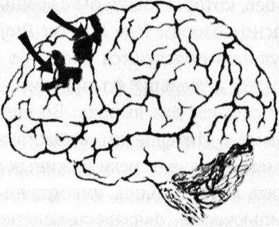 Планируя наше исследование, мы опасались, что пяти дней недостаточно для заметных изменений в мозгу, однако прежние работы давали основание думать, что мозг «цифровых иммигрантов» обучается довольно быстро. Гипотеза оказалась верна. Спустя пять дней тот же самый участок коры заработал и у «компьютерно неграмотных». Пять часов в Интернете, и подопытные перестроили свой мозг. На рисунке ниже двумя стрелками показана нейронная сеть, которую поиск в Googleвключает в мозгу за считаные дни, проведенные перед компьютером.