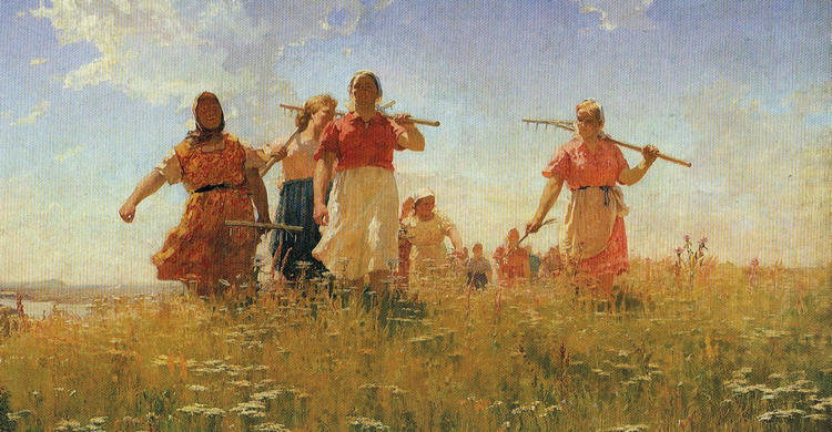 А. А. Мыльников. На мирных полях. 1950 г. Масло. Москва, Государственная Третьяковская галерея.