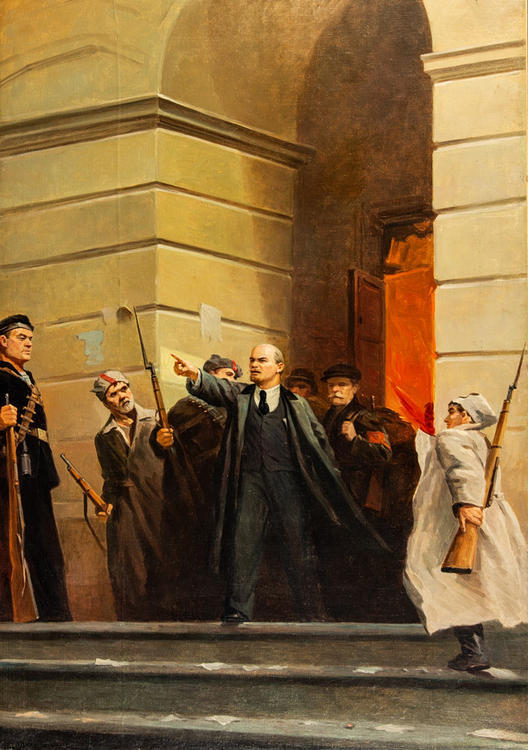 Художник не избежал известной риторичности. Но важно понять и почувствовать, что и условные поза и жест Ленина (скорее подходящие для скульптурного монумента, чем для живописной картины), и несколько театральная группировка фигур, и эффектный контраст холодного света ночи и горячих огней Смольного – все это сосредоточено художником для того, чтобы хоть отчасти закрепить для зрителя нечто из того великого, чем была в истории минута, когда Ленин возвестил начало революции.