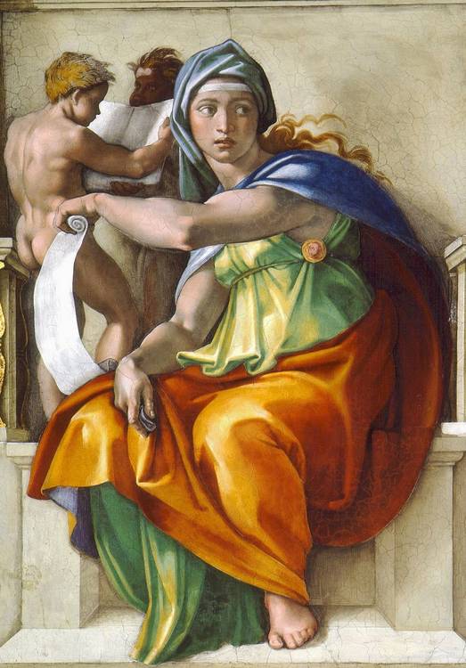 Микеланджело. Сивилла Дельфийская. Фреска. 1508—1512 гг. Италия, Рим, Сикстинская капелла.
