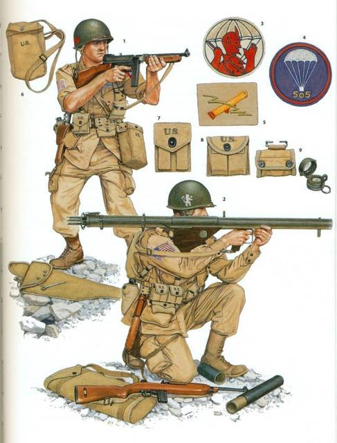 Американская пехота в годы 2-й мировой войны была вооружена исключительно автоматическим и самозарядным стрелковым оружием, при большой насыщенности подразделений крупнокалиберными пулеметами и противотанковыми базуками. Это придавало даже парашютистам немалые возможности, благо имелось большое количество транспортных самолетов, с которых сбрасывали на платформах джипы и легкие орудия…