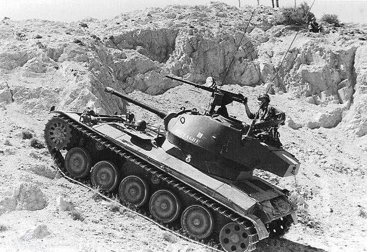 Французский послевоенный АМХ-13 имел множество модификаций, включая даже самые «экзотические», созданные в других странах – такие как эта машина, где на шасси установили башню от американского времен войны легкого танка «Чаффи»…