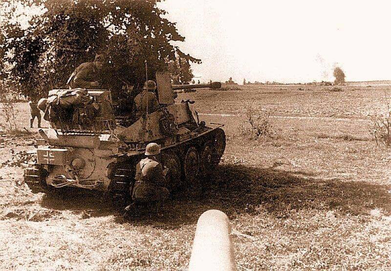 «Артц» был понятен насквозь, вот только взглянув в ту сторону, маршал окаменел. Если бы не бритый череп, то у Григория Ивановича волосы бы встали дыбом – в лощине было немцев, как грязи на дождливом проселке. Судя по всему, они вышли на фланг обороны будущего «коридора», а позиции здесь держал мотоциклетный батальон. В немецких панцер-дивизиях разведку проводил и он, и специальный моторизованный батальон, именовавшийся «разведывательным» – наличие двух частей являлось нормой. И народа, судя по всему под тысячу – выставлены броневики и «панцер-ягеры». И хоть до своих близко, поле миновать и в кусты на той стороне юркнуть, но тут не прорвешься – полтора десятка немцев еще можно истребить, но сбегутся со всех сторон другие, их здесь в окрестностях как тараканов. Пришло осознание, что сейчас придется умирать – не хотелось бы, но тут смерти не избежать. Хотя если встретиться с Гудерианом, тот может его и отпустить, найдутся определенные доводы к рассудку.
