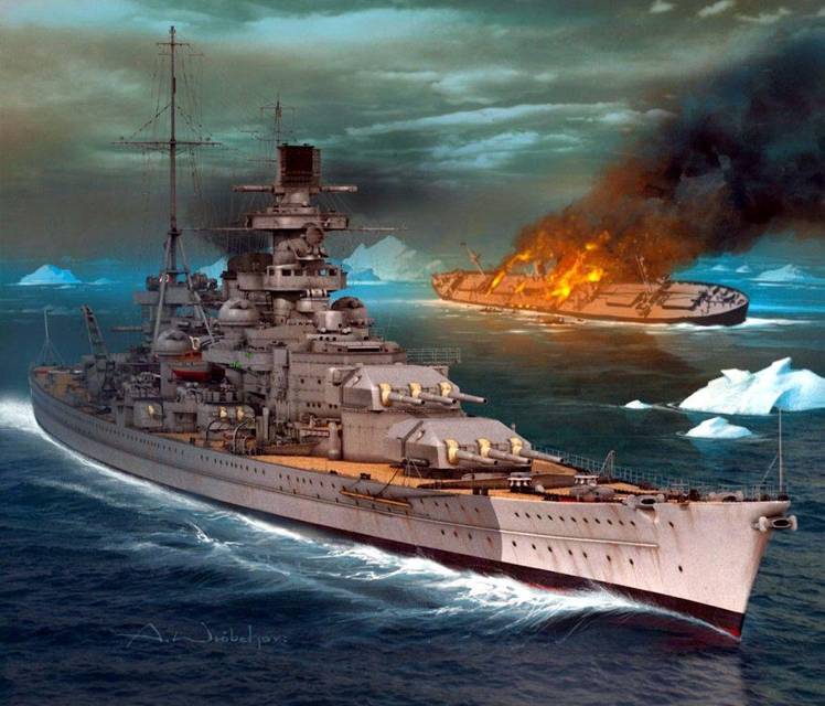 Германскому линейному крейсеру «Шарнхорст» в реальной истории довелось пиратствовать в арктических водах. И в Рождество на 1944 год он нарвался на британский линкор «Дюк оф Йорк» с крейсерами, и 356 мм снаряды прервали карьеру одного из знаменитых корсаров Гитлера…