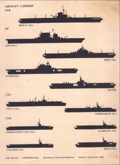 Во второй мировой войне главную силу американского флота представляли ударные авианосцы разных типов – на декабрь 1945 года таковых было построено вместе с погибшими двадцать восемь тяжелых и одиннадцать легких, считая «Рейнджер» и «Уосп», и не учитывая «Лэнгли». И более сотни эскортных авианесущих кораблей – так в сражении у Филиппин в 1944 году на одном соединении из таких «каноэ» было самолетов больше, чем на ударных авианосцах Нагумо во время знаменитого налета на Перл-Харбор 8 декабря 1941 года…