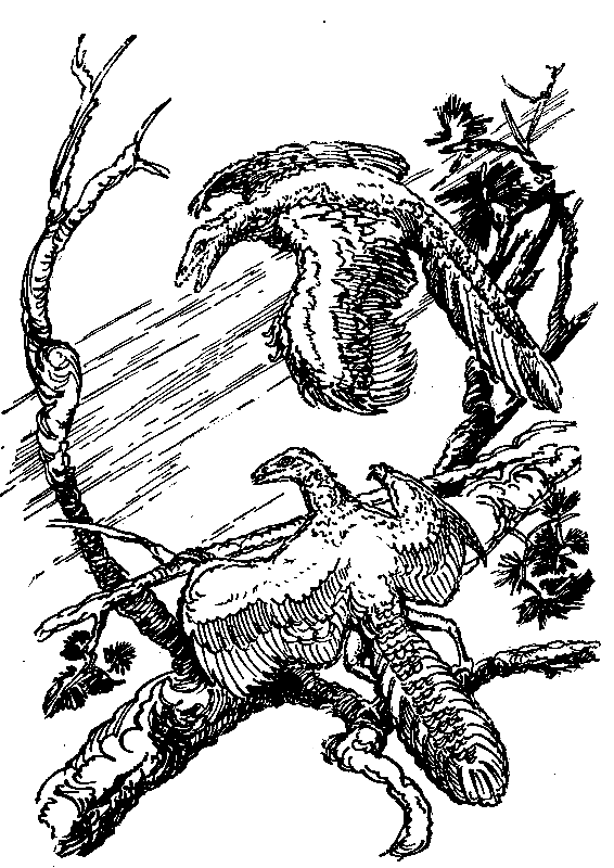 Пернатые убийцы рыскали на равнинах и лесных прогалинах, голодными пронзительными криками распугивая все живое. Их клекот порождал неприятное и злое эхо. Они бродили и вслушивались в шорохи, трели и писки жизни, несшиеся к ним отовсюду.