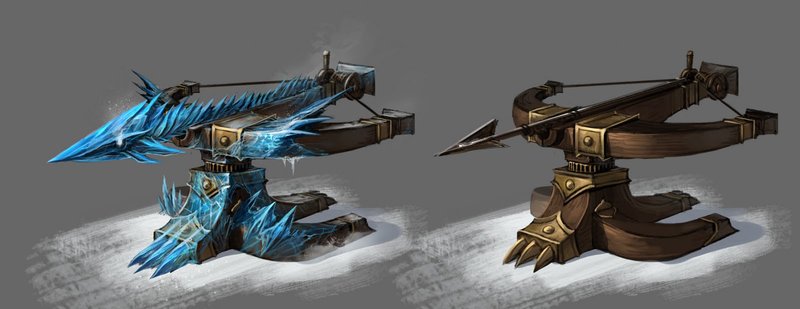 В обычном своём положении они напоминали простое подобие арбалета, сделанного в форме некоей турели, тогда как в них запускали магию… Стрела резко превращалась в убийственную смесь физической и магической мощи.
