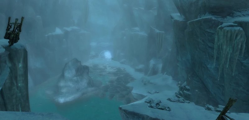 Ледяной туннель довольно быстро привёл меня к огромному замёрзшему ущелью, находящемуся в вечном состоянии какой-то прохладной белой дымки.