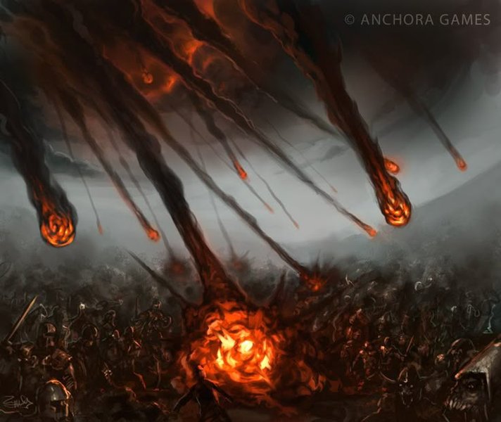 Всюду падают огненные каменные метеориты.
