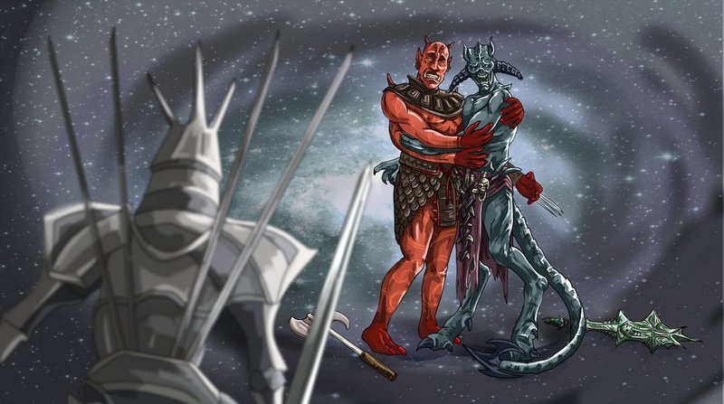 Моей задачей было объединить всё это, гармонично и правильно, чтобы они стали единым целым, а не конфликтующими моментами. По принципу враг моего врага – мой друг. То есть, Джиггалаг враг даэдра, врагов Аури-Эля, а значит первый друг последнему.