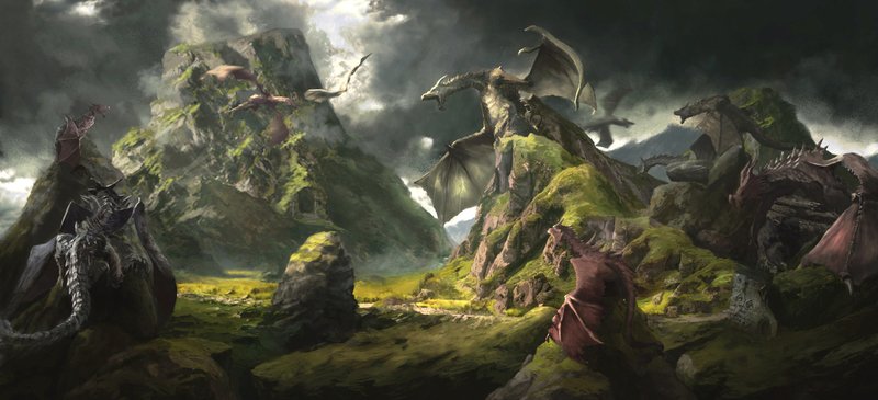 (Не совсем те драконы, однако я не смог найти арта где было бы прямо много четырёхлапых драконов, да)