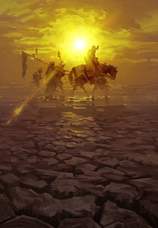 Высоко над пустынной, жаркой равниной, далеко даже от летящих драконов в жёлтом небе висело огромное раскалённое солнце, искажающее всё видимое слепящим даже наши глаза солнечным огнём и дрожанием воздуха…