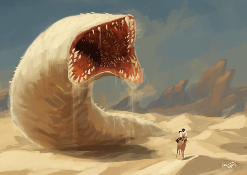 – Огромный песчаный червяк. – телепатией ответил я, когда пережил самые первые секунды лёгкого ступора после внезапного, и что самое опасное – абсолютно незаметного появления тварюги.