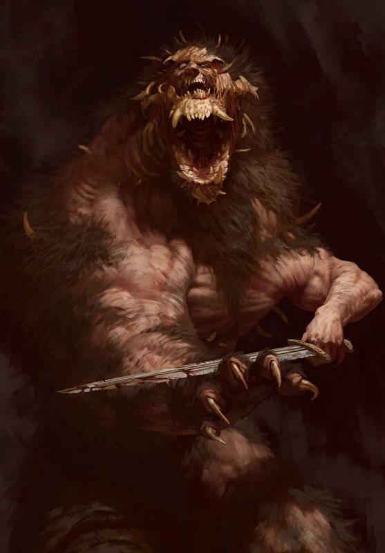 Он не носил брони, но раны на его могучем теле явно не доставляли ему хоть каких-то неудобств. Лысина и огромная рыжая борода с накидкой из шкуры медведя только усиливала его образ.