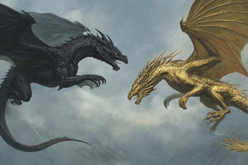 Со всей силы махая крыльями, два дракона на полной скорости устремились к друг другу, казалось, желая врезаться в друг друга с наибольшей возможной силой.