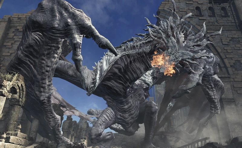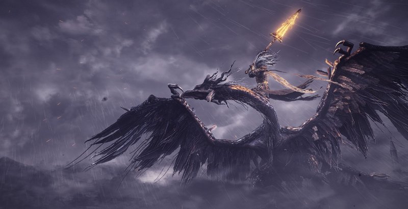 Следом древняя чёрная драконица резко взмыла в воздух, игнорируя факт окаменелости своего тела крыльев, и буквально сразу же встречаясь в воздухе с вынырнувшим над титанической колокольней всадником на потрёпанной виверне.