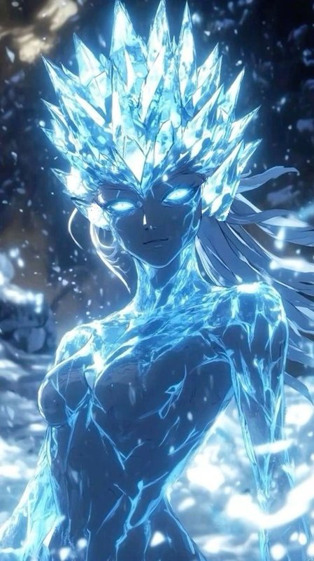 Женская ледяная фигура с ёжиком-короной из промораживающего до костей одним лишь своим видом кристаллов посмотрела на нас пылающими воплощённым хладом глазами.